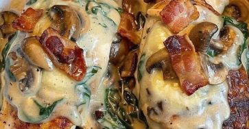 Here is a complete, cleanly formatted recipe write-up for Creamy Spinach Chicken with Bacon and Melted Cheese — with no…