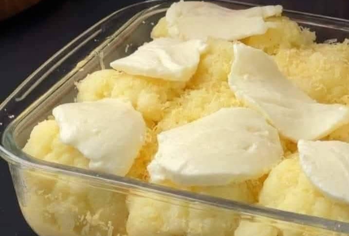 - Arrange cauliflower in the baking dish and pour cheese sauce evenly over it.