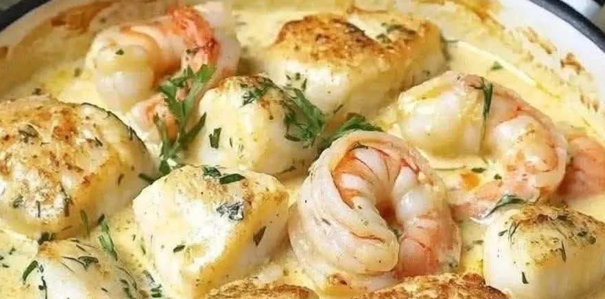 This creamy seafood dish proves that elegance and comfort can coexist beautifully. Whether you’re preparing a romantic dinner or simply treating yourself, its rich flavors and tender textures make it a memorable meal.