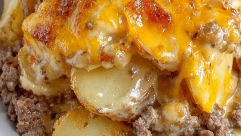 This casserole features layers of soft, buttery potatoes combined with seasoned ground beef and a creamy sauce that melds everything together. The melted cheddar on top adds richness and irresistible golden color, making each bite warm, gooey, and comforting.